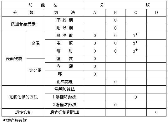 一般防蝕方法,即為上述四種原理之組合,可做以下之分類: