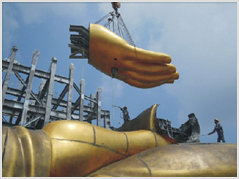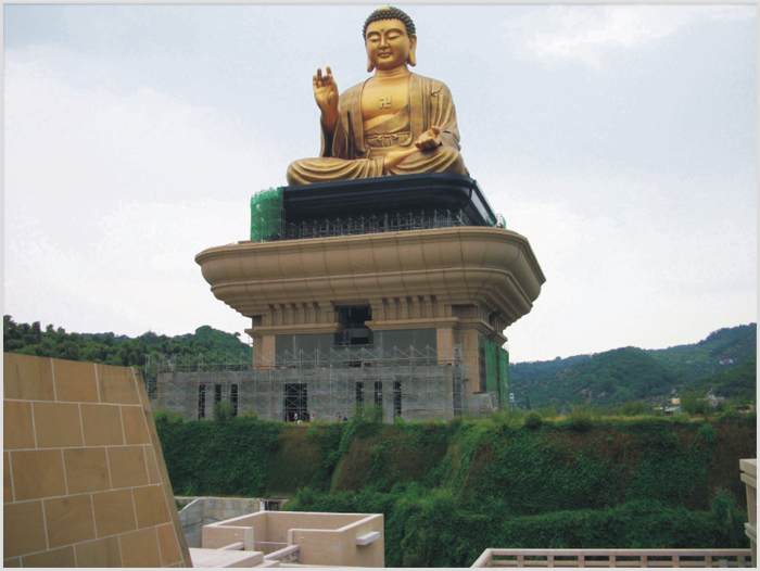 主館後方為佛光大佛,通高一百零八公尺相當於三十六層樓高,像高五十公尺,為世界最高銅構坐佛,內部採用鋼構建材,總計使用一千七百八十公噸鋼鐵鑄成,並做熱浸鍍鋅防蝕處理,確保內部鋼材長期不會銹蝕。